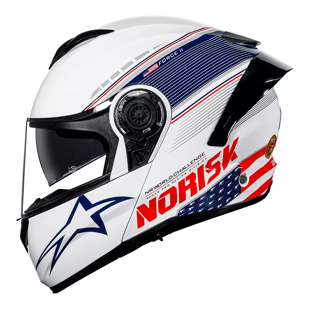 CAPACETE NORISK FORCE II GRAND PRIX USA – Branco Azul e Vermelho