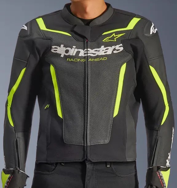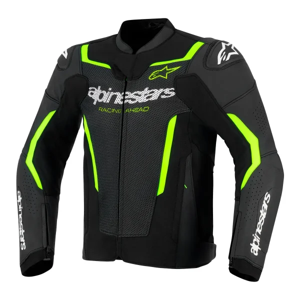 JAQUETA COURO ALPINESTARS GP FORCE V2 AIRFLOW – Preta e Amarela Flúor