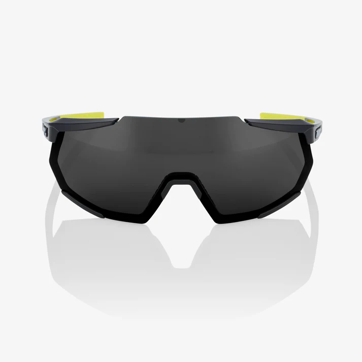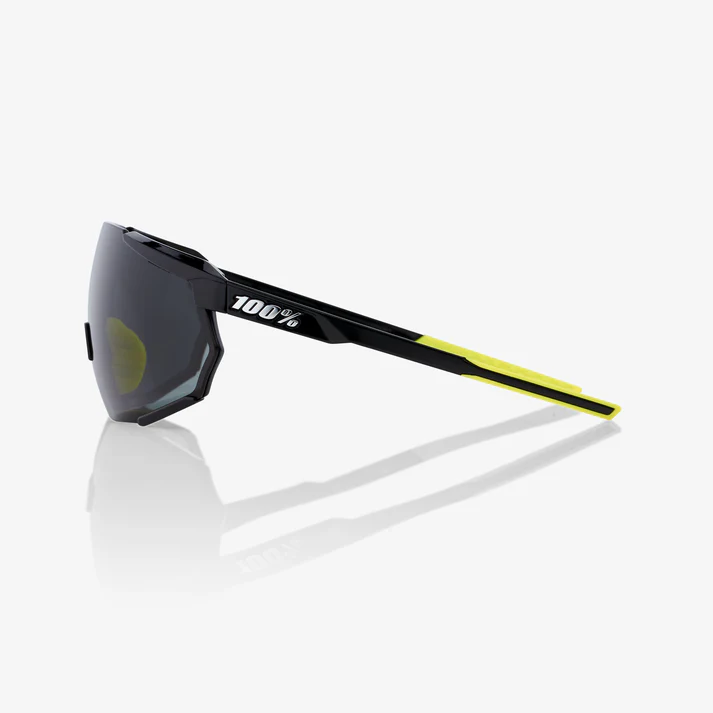 ÓCULOS 100% RACETRAP® 3.0 – GLOSS BLACK – SMOKE LENS – Haste Preta e Amarela Lente Fumê